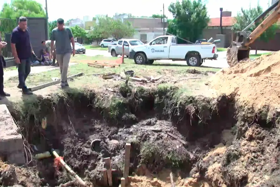 El subsecretario de Obras Sanitarias, Rodrigo Cabrera, explicó a Elonce que la intervención se realizó sobre una cañería de 630 milímetros. “En el día de hoy intervenimos la cañería de 630 mm en una derivación hacia una válvula de desagüe que tenemos aquí, en una cañería de 250. Nos encontramos con una rotura en esa cañería y en este momento ya estamos finalizando con el trabajo de reparación”, señaló.