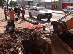 Finalizó la intervención en la cañería de agua potable de avenida Almafuerte y reestablecen paulatinamente el suministro.