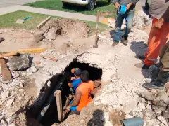 Personal de la Municipalidad de Paraná se encuentra abocado en la reparación de una cañería de distribución en barrio San Agustín.