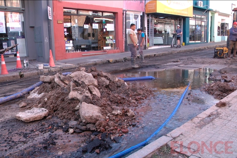 Este miércoles por la tarde iniciaron tareas para reparar una pérdida de agua en calle Pellegrini, entre Perú y España. En diálogo con Elonce, el secretario Eduardo Loréfice precisó que podría haber cortes en el suministro.