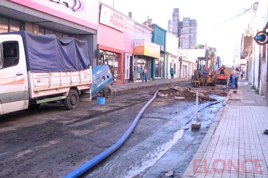 Este miércoles por la tarde comenzaron trabajos de reparación en una cañería ubicada en calle Pellegrini, entre Perú y España, en la ciudad de Paraná. La intervención se llevó a cabo tras detectarse una pérdida de agua en el sector, lo que motivó una acción rápida por parte del municipio.