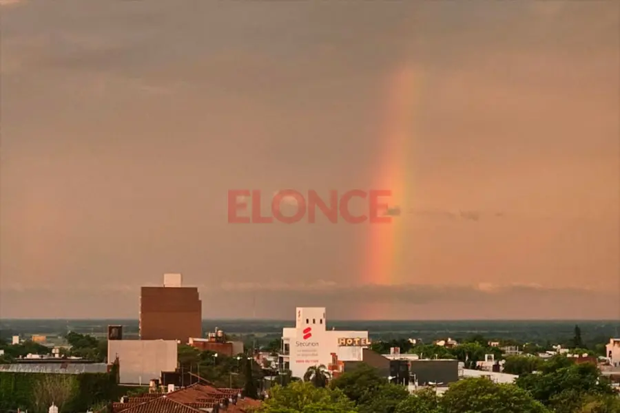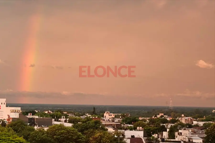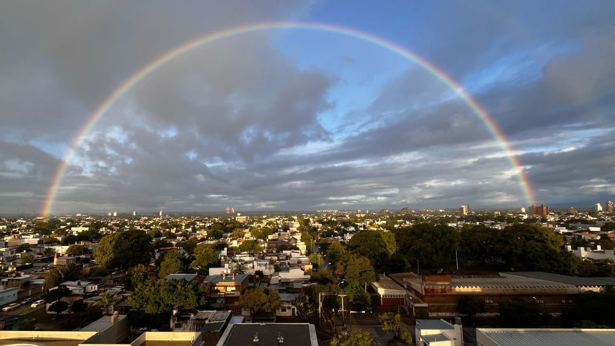 Luego de una mañana marcada por fuertes precipitaciones y anegamientos, una mejora temporaria del tiempo permitió observar un arco iris parcial en el cielo. Elonce registró el fenómeno y recibió imágenes de vecinos.