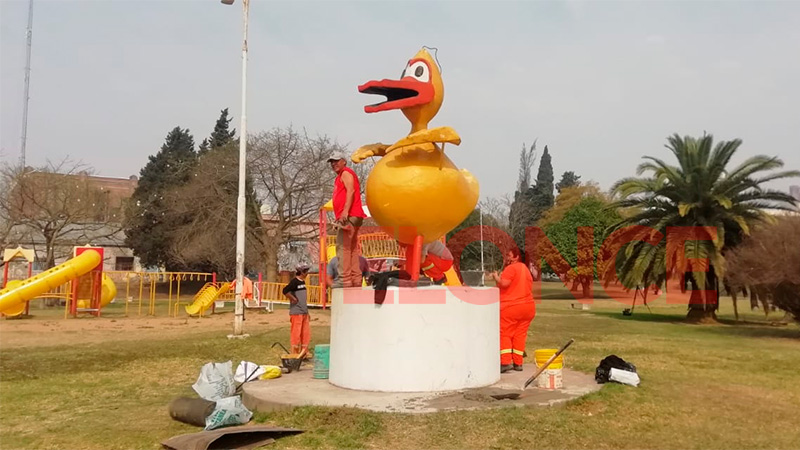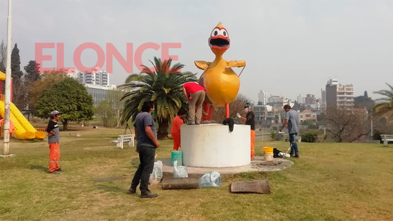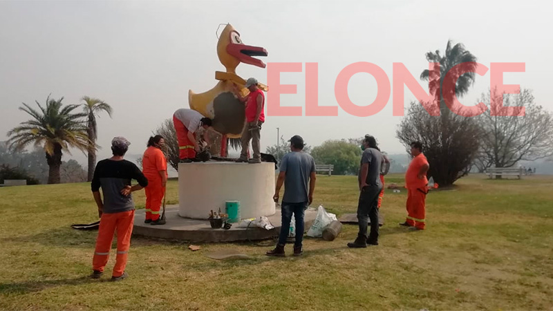 Restauran uno de los emblemas de Paraná, la escultura del Patito Sirirí