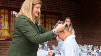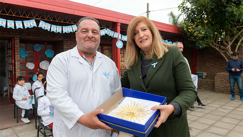 En la ocasión, la secretaria escolar Victoria Pérez, repasó: “Es un día muy feliz y emotivo para la comunidad educativa, sobre todo para los alumnos de 4º grado que realizan su promesa de lealtad a la bandera”, comentó y ponderó la visita de la intendenta Rosario Romero “con obsequios que son muy necesarios para los chicos”.