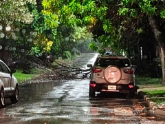 Durante las fuertes lluvias, se cayeron dos árboles en Bajada Grande. El Coordinador de Defensa Civil informó que cayeron 30 mm de agua, sin grandes anegamientos, aunque la lluvia continuará durante varios días.