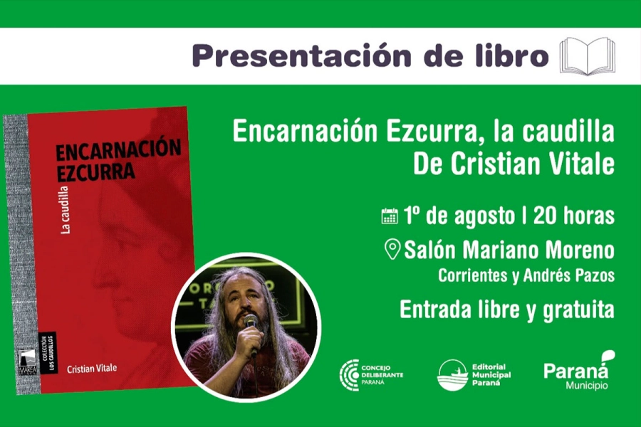 Se presenta en Paraná el libro “Encarnación Ezcurra, la caudilla”, de Cristian Vitale. Será este viernes 1 de agosto, a partir de las 20 hs, en el Salón Mariano Moreno del Honorable Concejo Deliberante (Andrés Pazos 94). La actividad es con entrada libre y gratuita.