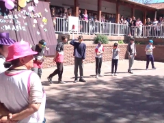Los pequeños “acompañados por sus docentes les hicieron hacer una coreografía o un desfile. Salió de los chicos”. Son un total de 150 chicos desde jardín a sexto grado de la primaria. “Ellos se sienten protagonistas”, concluyeron”.
