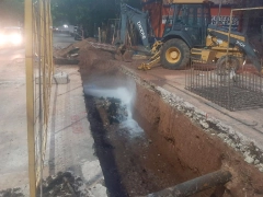 Se repara cañería de agua potable en calles Colón y Salta, de la ciudad de Paraná. Debido a la rotura ocasionada por una empresa constructora a cargo de una obra que ejecuta el gobierno provincial, personal municipal ejecuta esta tarde un operativo de emergencia para el arreglo del conducto averiado.