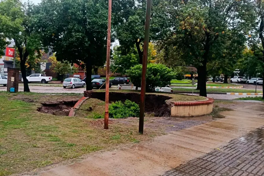 Un socavón se registró en espacio público del centro de Crespo. El hundimiento tuvo lugar en un cantero ornamental, ubicado frente a un complejo de viviendas, en la intersección de calles Rivadavia y Belgrano.