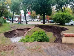 En tanto, un importante socavón se produjo en la tarde de este miércoles en pleno centro de Crespo. El hundimiento tuvo lugar en un cantero ornamental ubicado frente al edificio de los monoblocks, en la intersección de calles Rivadavia y Belgrano.