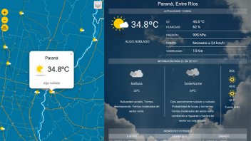 El chaparrón de la mañana sumó más humedad a la sofocante jornada en Paraná. Mientras el termómetro sigue en ascenso y marcaba <b>33,9 grados a las 12, se registraba una marca poco usual en la capital entrerriana: 44,3 grados de sensación térmica, es decir, cuatro grados más que dos horas antes</b>.