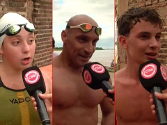 Bruno Lemaire fue el vencedor de la maratón del Thompson que se corrió desde las 16:30 horas en la ciudad de Paraná y tuvo como punto de llegada la playa del Club Atlético Estudiantes. Elonce dialogó con el ganador y dialogó con el resto de los nadadores.