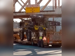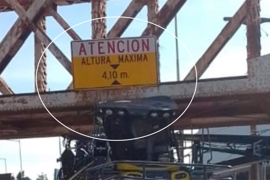Un camión que trasladaba maquinaria agrícola chocó contra el puente de hierro en Almafuerte al exceder la altura permitida. Hubo demoras en el tránsito y daños.