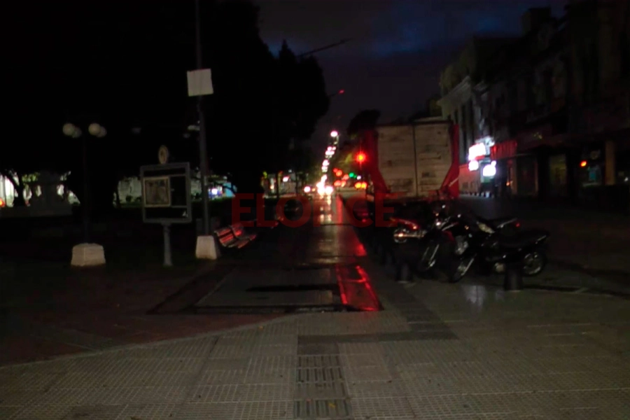En la noche del domingo, la Plaza 1º de Mayo y la peatonal San Martín de Paraná quedaron a oscuras. La falla fue ocasionada por el ingreso de agua en un tablero de luz y también interrumpió semáforos.