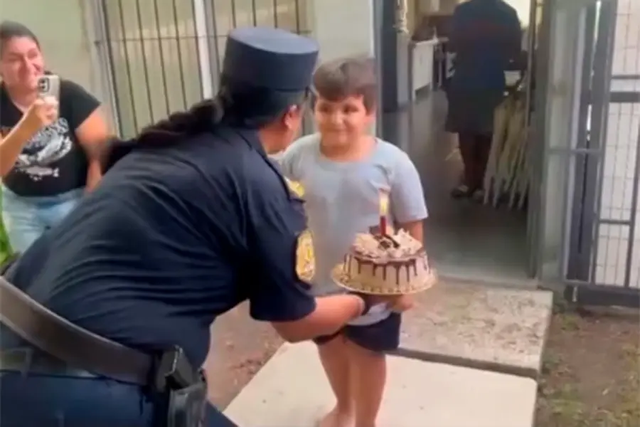 Para el pequeño, la llegada de los policías fue mucho más que una visita: fue la oportunidad de compartir su cumpleaños con personas a las que admira y que representan para él un ejemplo.