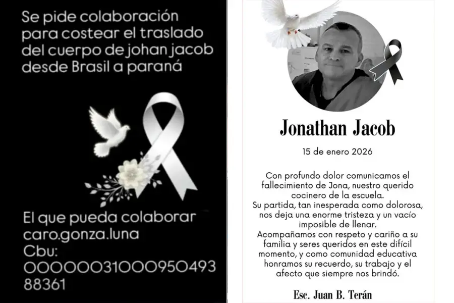 Tras el fallecimiento, la familia de Jonathan Jacob atraviesa ahora una situación sumamente compleja, ya que debe afrontar los elevados costos que implica el traslado del cuerpo desde Brasil hasta Paraná. Frente a esta realidad, solicitaron la colaboración de la comunidad para poder reunir los fondos necesarios.