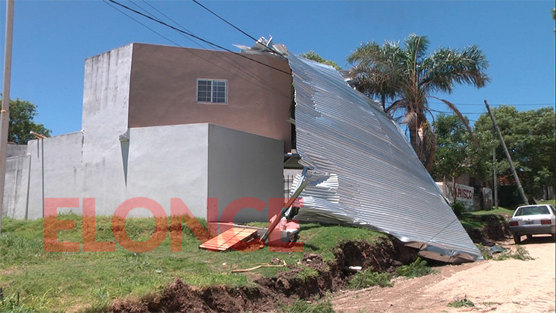 "La fuerza del viento y el peso del techo hizo como un remolino, golpeó en el techo del vecino, pasó por encima de un árbol, que cortó limpito, y cayó sobre mi casa", explicó.