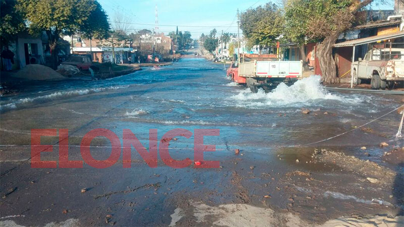 Producto de la pérdida de agua, Don Bosco se convirtió en un río y los vecinos expresaron su preocupación por lo sucedido. Además calle Scapelatto, a unas dos cuadras donde se produjo la rotura del caño, quedó completamente inundada. <i>Elonce.com</i>