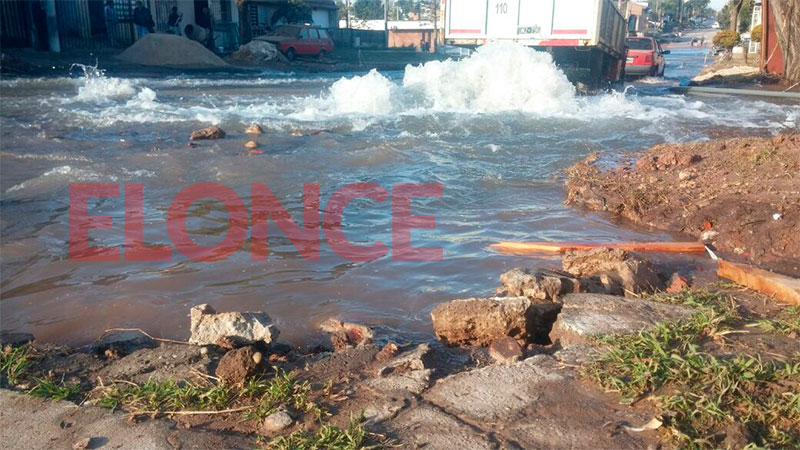 En las primeras horas de la tarde de este jueves, y mientras se realizaban tareas de pavimentación en Avenida Don Bosco al 1000, los operarios detectaron una pérdida de agua. Cuando se hizo presente personal de Obras Sanitarias de la Municipalidad y se comenzaron los trabajos para hallar la avería, se produjo la ruptura del caño de 750.