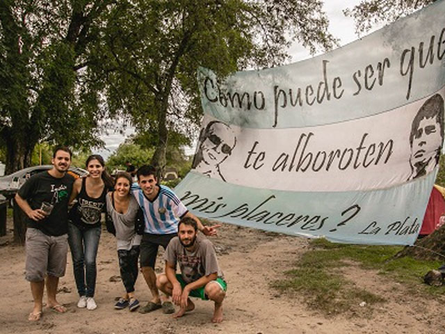 Un adolescente de 16 años, explica a Télam: "Esto que pasa acá es de todos, sangre pura, pero aunque mi vieja me crió escuchando a Los Redondos, yo vengo por el Indio, me cabe la alegría". Habla y señala al mismo tiempo una bandera que brega por la inocencia de la banda Callejeros.