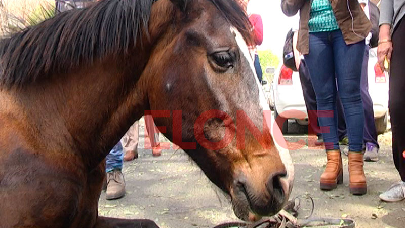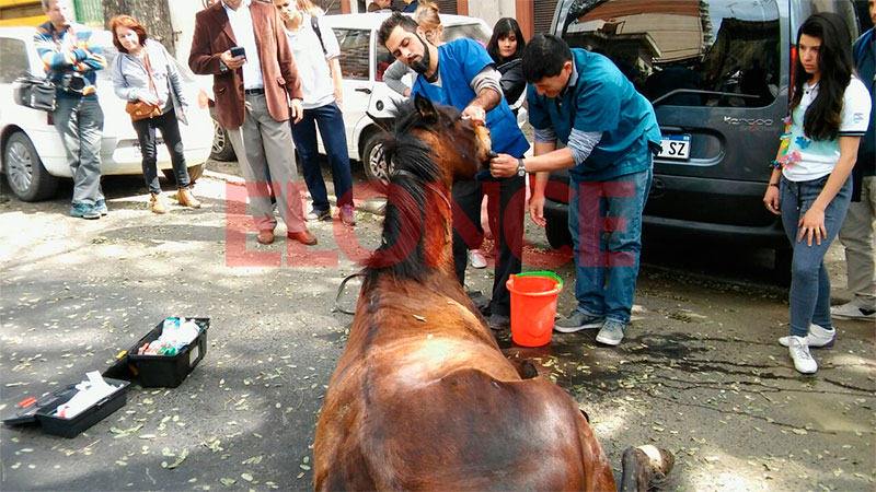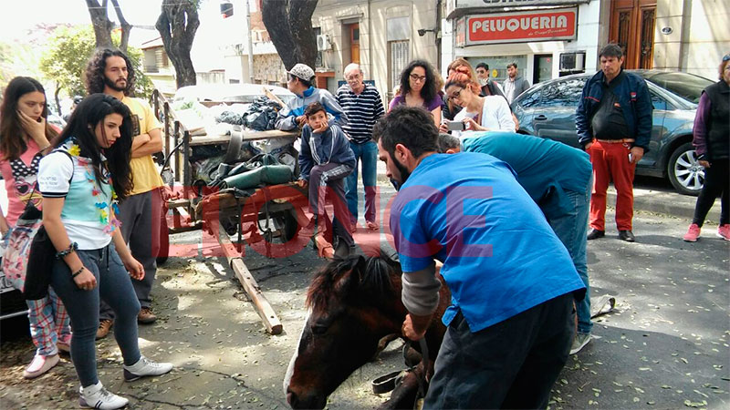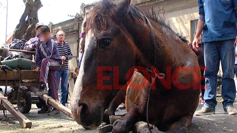 Una yegua preñada que traccionaba un carro cargado con basura se desvaneció en la vía pública, a la altura de calle Ilia a metros de su intersección con 25 de Mayo, registró <i>Elonce TV</i>.