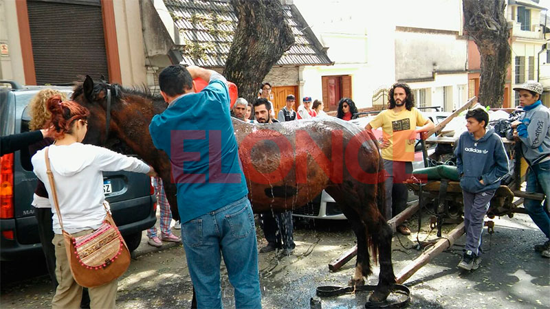 Vecinos la asistieron con agua y hubo un entredicho con los propietarios del equino, dos menores de edad, cuando les recriminaron por qué maltrataban al animal.