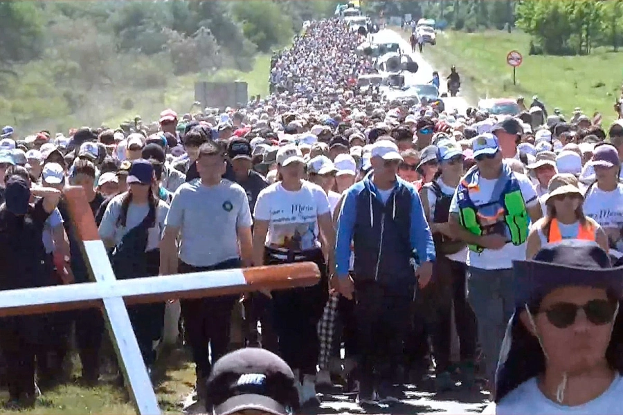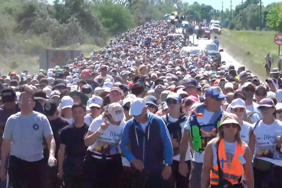 Miles de fieles participaron este sábado de la 43ª Peregrinación de los Pueblos, la tradicional manifestación de fe que une las ciudades de Hasenkamp y Paraná. A lo largo de más de 90 kilómetros, la impresionante columna de peregrinos avanzó bajo el sol, entonando cantos y rezos en dirección al Santuario de Nuestra Señora de Schoenstatt, en el barrio La Loma de la capital entrerriana.