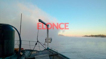 Desde un buque arenero, un lector de Elonce mostró otro panorama de la gélida mañana del lunes y dio cuenta del fenómeno meteorológico que se produce en el río, con las primeras luces del sol. Fotos y video.
