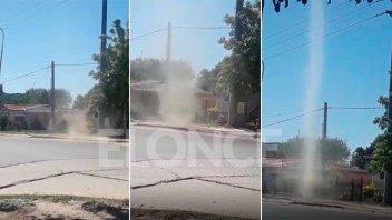 Televidentes que lo dieron a conocer a <i>Elonce TV</i>, dieron cuenta que se registró en la tarde de este viernes, en la zona de calles Larramendi y Mendoza, y si bien en un principio pensaron que podría tratarse de un escape de gas, al instante corroboraron que se trataba de un remolino de tierra.