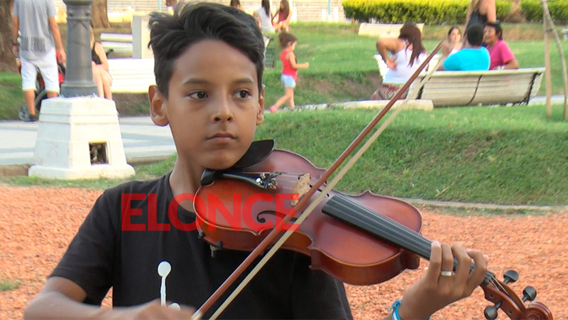 Dylan, es <b>un niño de 12 años que toca su violín "a la gorra" con el objetivo de continuar con sus estudios en la Escuela de Música de Santa Fe, contó a Elonce</b>. Su hermana y su padre también son músicos y lo acompañan.