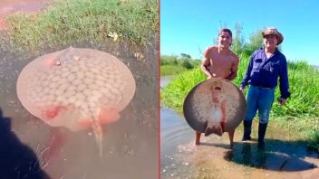 Pescaron una raya de 30 kilos desde la costa de Bajada Grande en Paraná. Según dieron a conocer, tras media hora de lucha, entre el pez y el pescador con su caña, lograron sacarla del río y afirmaron que tenía más de 30 kilos.
