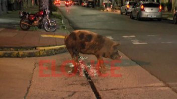 "Nos llama la atención este chancho caminando por la ciudad, pobrecito. Es algo inusual", dijo un vecino. No sería la primera vez que se escapa.