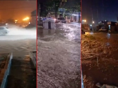 Videos: calles anegadas y contenedores arrastrados tras fuerte temporal en Paraná