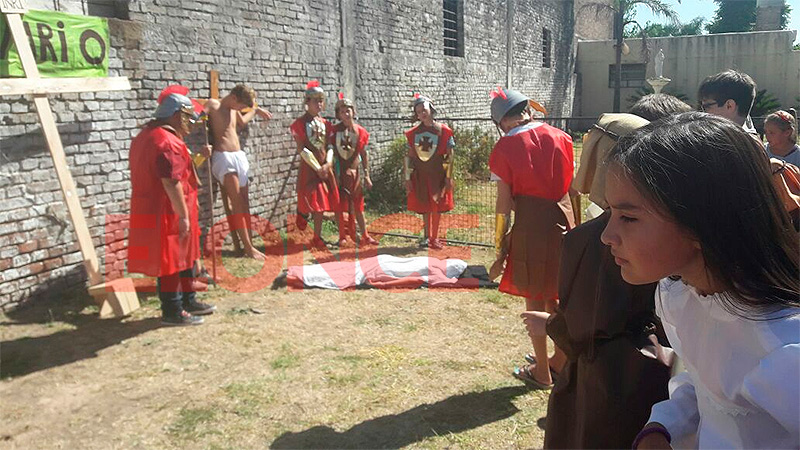 La comunidad educativa del Instituto Privado Nº 132 "Santa Lucía" realizó este viernes un vía crucis viviente de niños, el cual partió desde Avenida Ramírez y Sarobe.