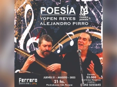 El escritor Yopen Reyes recitará poesías inéditas acompañado por Alejandro Pirro en laúdes y flautas barrocas. El evento se realizará hoy, el jueves 21 de agosto a las 21, en Piedrabuena 133, Paraná. Cupos limitados y entradas a $5.000. Los detalles.