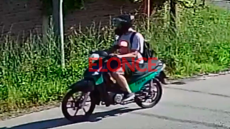 El sujeto pasa en moto junto a una joven, la manosea y sigue su marcha en una moto, que sería de 110 cc., y con algunas partes de color verde. Dicho abuso quedó grabado en las cámaras de un domicilio y las imágenes que se ven esta nota son las aportadas por vecinos.