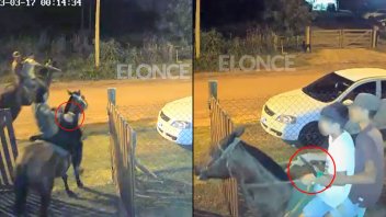 El sujeto armado trataba de ganar tiempo para que el otro jinete saliera del terreno, mientras otros dos sujetos a caballo, miraban desde la calle. Tras lo cual, huyen al galope del lugar.
