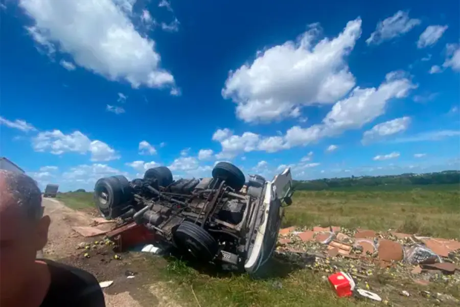 Un accidente en Ruta 11 se registró este martes cerca de Victoria, cuando un camión que transportaba botellas de fernet chocó contra una Kangoo. Parte de la carga quedó esparcida en la banquina y fue retirada por vecinos de la zona.