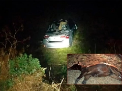 El auto Toyota en el que viajaba impactó contra varios caballos, unos 20, que transitaban sobre la calzada.