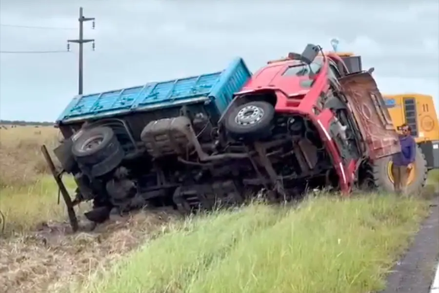 El hecho involucró a un camión Ford 1723, conducido por un hombre de 37 años, domiciliado en Curuzú Cuatiá, provincia de Corrientes. El vehículo circulaba en sentido norte-sur y transportaba una carga de piedra con destino a la ciudad de Rosario del Tala.