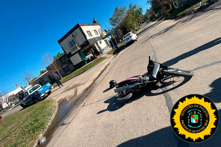 Poco después, a las 14:10, personal de Comisaría Segunda intervino en un incidente vial en la intersección de las calles Líbano y Mitre, donde una motocicleta impactó contra un automóvil Ford Fiesta.