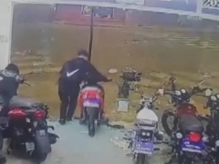 Estuvo aproximadamente un minuto eligiendo qué moto robarse, que al final fue una Motomel Bits, la cual se la llevó a pie con total tranquilidad. Las alarmas de la concesionaria saltaron y dieron aviso a la Policía.