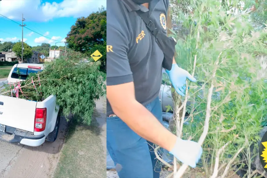 En el mismo domicilio, el personal policial halló una sustancia vegetal compatible con cannabis sativa, junto a varias plantas de la misma especie, lo que motivó la intervención de la División Drogas Peligrosas.