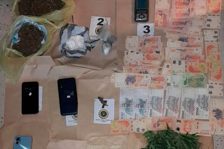 Durante el procedimiento, los efectivos hallaron elementos que evidenciarían la actividad delictiva investigada. Se secuestró un trozo compacto de clorhidrato de cocaína con un peso de 133 gramos, junto con marihuana fraccionada en dos bolsas de nylon, totalizando más de 440 gramos. Además, se encontraron 26 plantas de cannabis sativa, un total de $69.500, siete teléfonos, y una gran cantidad de semillas de la misma especie.