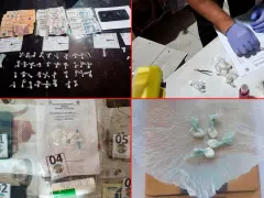 Durante los procedimientos se secuestraron más de cincuenta envoltorios de nylon con clorhidrato de cocaína, fraccionados y destinados a la comercialización directa al consumidor, además de una suma importante de dinero en efectivo, presuntamente proveniente de la venta de estupefacientes.