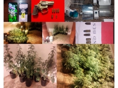 En el segundo allanamiento se incautaron dos vainas servidas calibre 9 mm, un cartucho calibre 9 mm, otro calibre 9x17 mm y uno calibre .38 corto. Asimismo, se hallaron 36 plantas de marihuana que medían entre 0,80 y 1,35 metros, junto con un sistema completo de cultivo, también incautado por orden judicial.