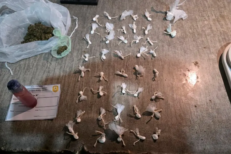 En materia de estupefacientes, la policía secuestró 42 envoltorios de nylon con un peso total de 50 gramos de cocaína, dos envoltorios con marihuana y tres plantas de cannabis sativa de entre 40 y 80 centímetros de altura.