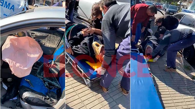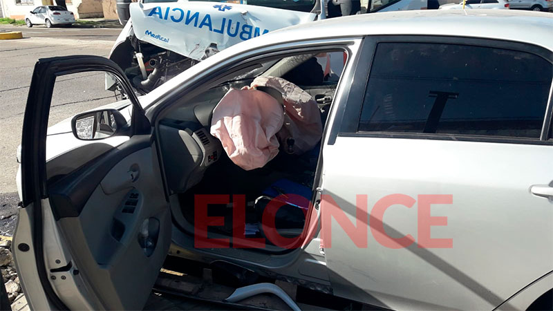 Desde el lugar del hecho, se pudo observar con claridad que debido al fuerte impacto entre los dos rodados, se activaron los airbags delanteros del Toyota Corolla y eso hizo que los golpes que sufrió el conductor no sean de gravedad.