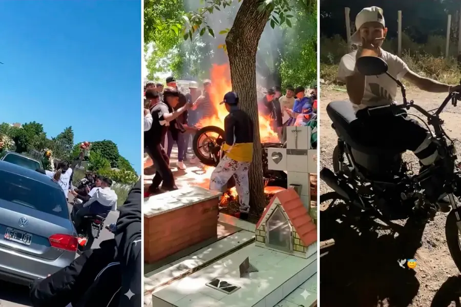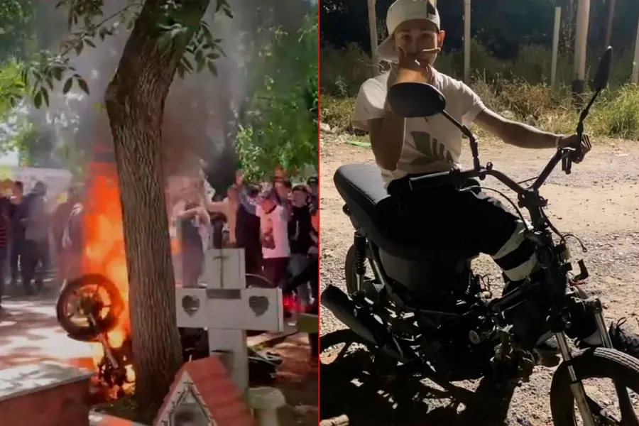 “Se te va a extrañar negro. Siempre en nuestros corazones. Vola bien alto”, reza uno de los mensajes difundidos junto al reel que muestra el momento del incendio del vehículo. La moto, envuelta en llamas y golpeada por los asistentes, se consumió sobre la lápida del joven.