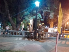 En la Costanera de Paraná, a escasos metros de la plaza Le Petit Pisant, una farola de alumbrado público se incendió. Bomberos Voluntarios logró apagar las llamas.